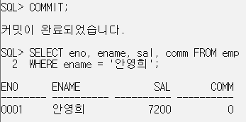 WHERE ename = '안영희'; // 수정 전 연봉 값으로 조회됨.(undo segment 값으로 조회됨)