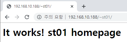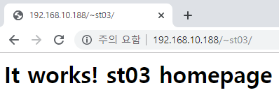 5. 192.168.10.188/~st01, ~st02, ~st03 접속해서 확인
