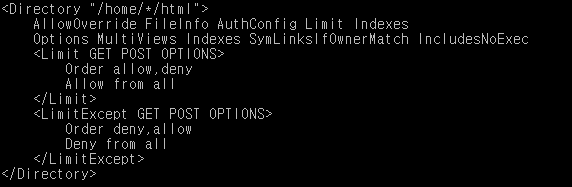 아래부분은 아파치가 모든 파일에 접속할 수 있는 권한을 주는 설정으로 기본적으로 설정이 되어잇으니 그냥 써도 무방.
