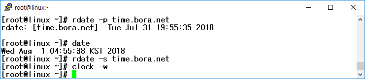 rdate -p time.bora.net : time.bora.net 서버의 시간 정보를 출력
