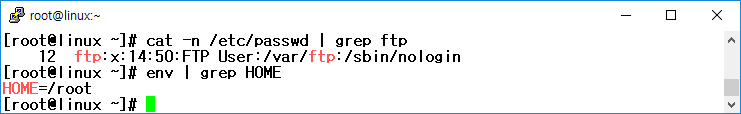 cat -n /etc/passwd | grep ftp : /etc/passwd 에서 ftp이라는 문자열이 포함된 라인을 라인 번호화 함께 출력