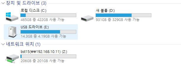 이런 식으로 네트워크 위치가 드라이브로 추가되어 있어서 앞으로는 Z드라이브로 접속하면 된다.