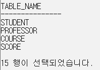 SELECT table_name FROM user_tables; 으로 만들어진 테이블 확인