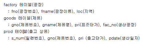 1. 다음 구조를 갖는 테이블을 생성. 각 테이블에는 필요한 PK와 FK를 지정. 데이터 타입이나 길이는 임의로 각자 결정하고 테이블 생성 순서에 주의한다.