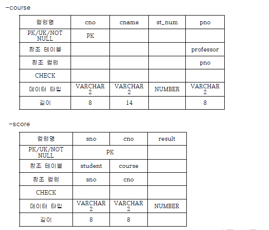 2. 다음 테이블에 대한 표를 보고 테이블 생성을 위한 스크립트 생성