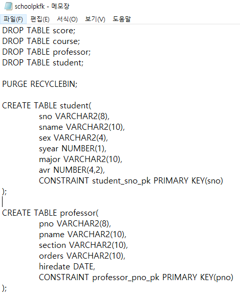 schoolpkfk란 이름으로 sql 생성 후에 실행