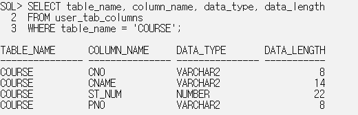 AND c.table_name in ('STUDENT', 'PROFESSOR', 'COURSE', 'SCORE')