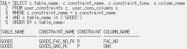 FROM user_constraints c, user_cons_columns s // 참조하는 테이블명