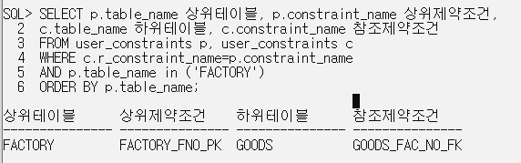 SELECT p.table_name 상위테이블, p.constraint_name 상위제약조건, //