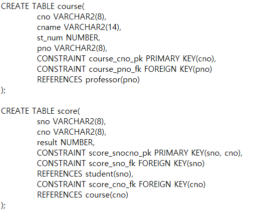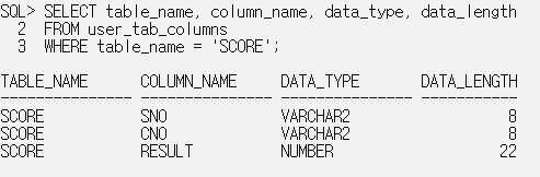 AND c.table_name in ('STUDENT', 'PROFESSOR', 'COURSE', 'SCORE')