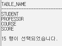 SELECT table_name FROM user_tables; 으로 만들어진 테이블 확인