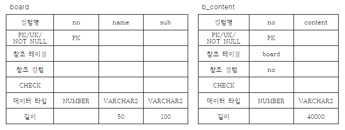 2. 다음 테이블에 대한 표를 보고 테이블 생성을 위한 스크립트 생성