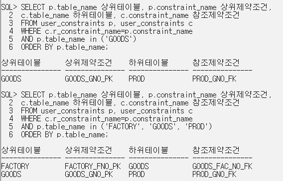 FROM user_constraints p, user_constraints c // 셀프 조인