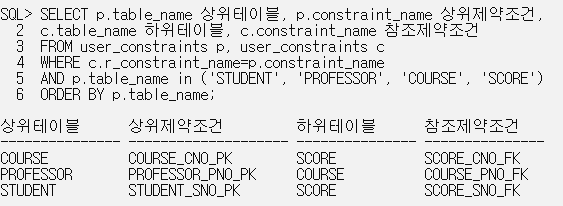 SELECT p.table_name 상위테이블, p.constraint_name 상위제약조건, //