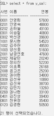 CREATE OR REPLACE VIEW y_sal (사번, 이름, 연봉)