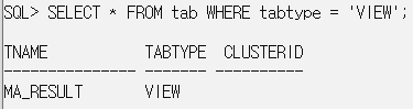 SELECT * FROM tab WHERE tabtype = 'VIEW'; // view의 목록 출력