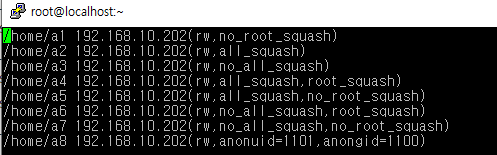 no_root_squash : 클라이언트의 root와 서버의 root를 일치시킨다.