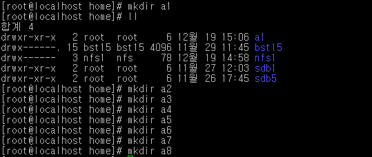 3. server와 client의 /home에 a1~a8까지 폴더 생성