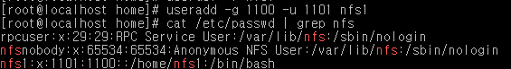 #useradd -g 1100 -u 1101 nfs1