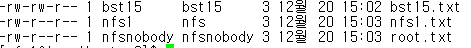 root, nfs1, bst15 모두 nfsnobody 소유로 파일 생성