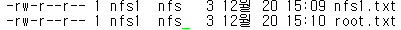 root는 nfsnobody로 나머지는 각자 계정 소유로 파일이 생성된다.