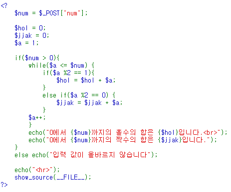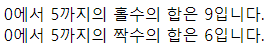[실습] 0보다 큰 정수를 입력받아 입력받은 정수까지 홀수의 합과 짝수의 합을 각각 출력하는 프로그램을 작성