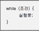 - 조건은 실행문이 반복될 때마다 실행되며 조건에 변화가 없으면 무한 반복한다.