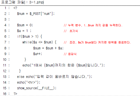 반복문은 항상 초기식(또는 초기값), 조건(문), 명령(실행구)문, 증감식의 4가지 요소를 갖는다.