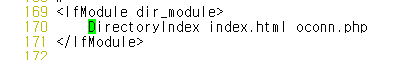 httpd.conf 파일에 DirectoryIndex에 oconn.php 추가(바로 인식할 수 있도록)
