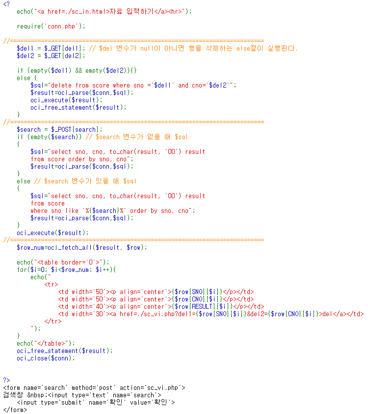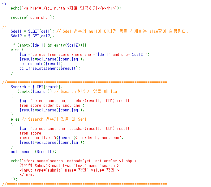 sc_vi 같은 경우 하나만 sno만 del로 잡으면 데이터가 한번에 다 지워질 수 있기때문에 cno도 같이 조건에 추가한다.