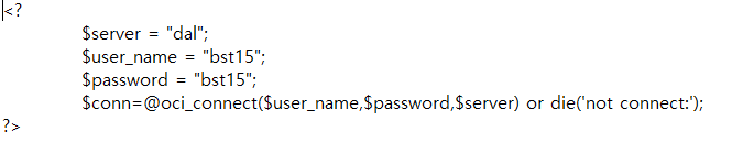 1. 오라클 연동을 위해 각 프로그램에서 호출 할 접속 프로그램 작성(conn.php)