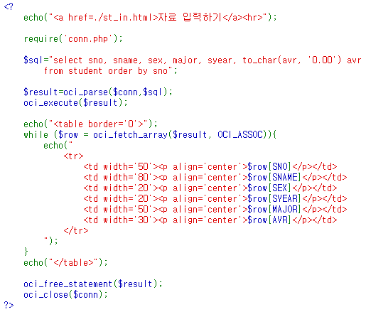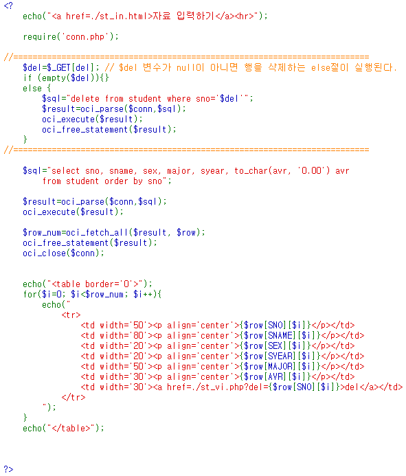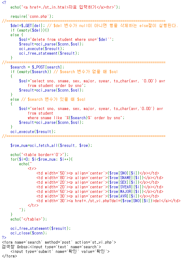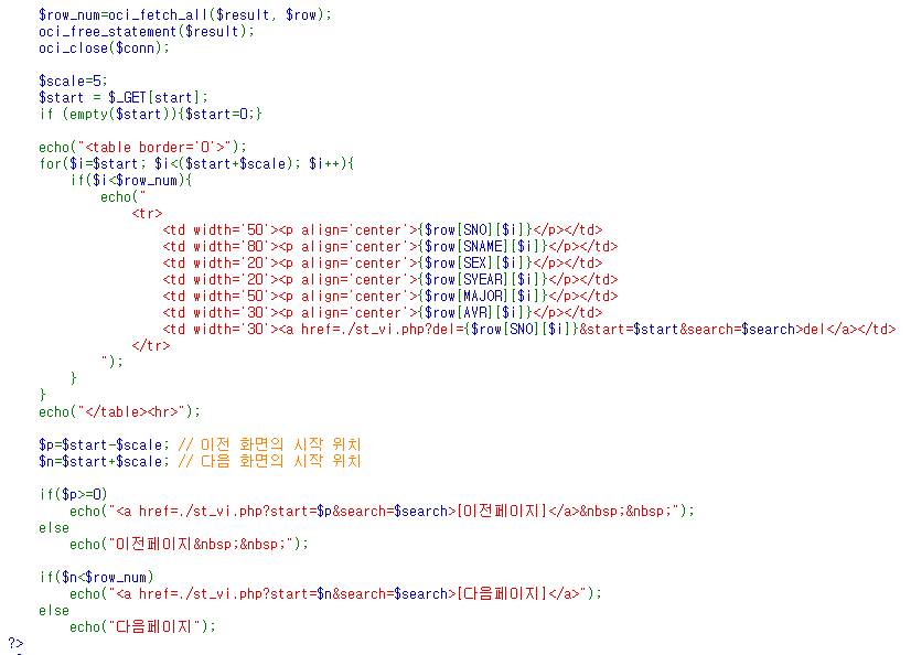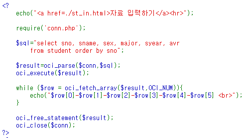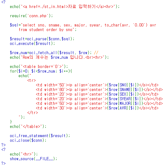 4. 학생 테이블의 내용을 출력할 프로그램을 작성(st_vi.php)