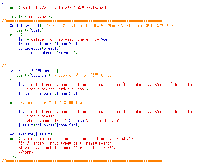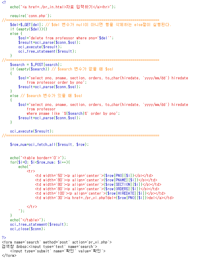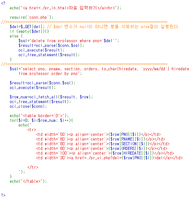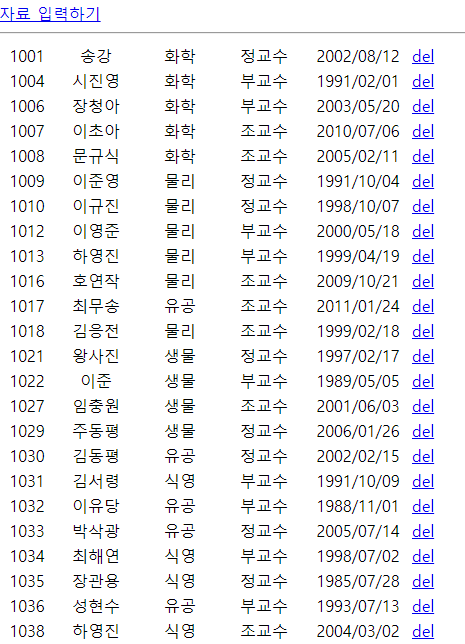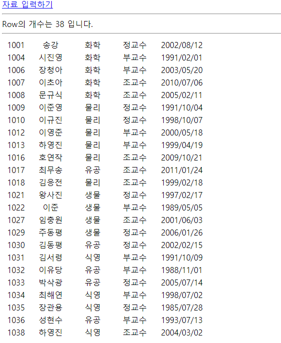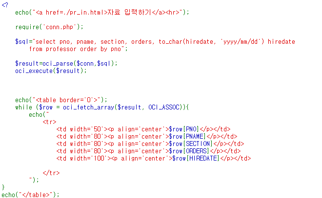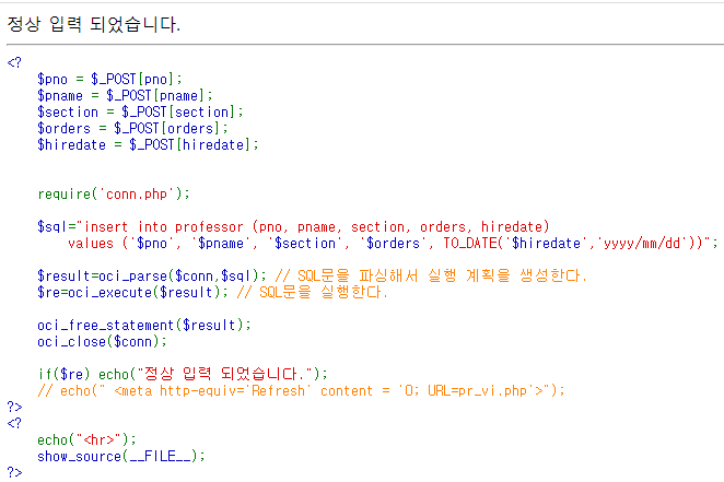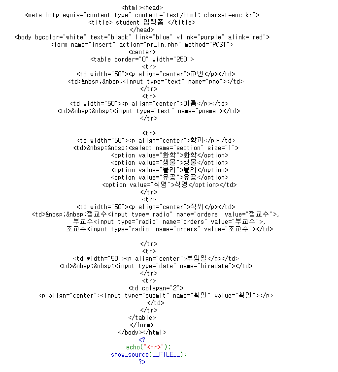 5-2. 교수 테이블에 입력된 데이터를 전달 받아 입력할 프로그램을 작성(pr_in.php)