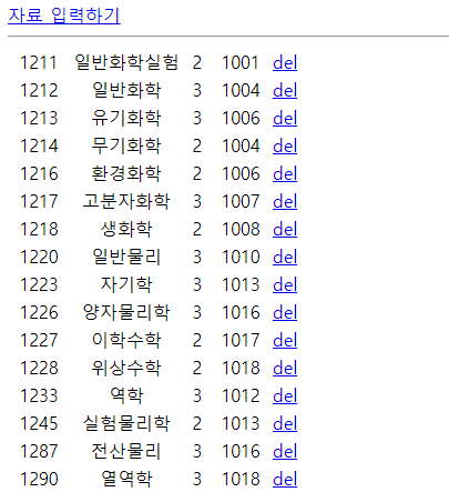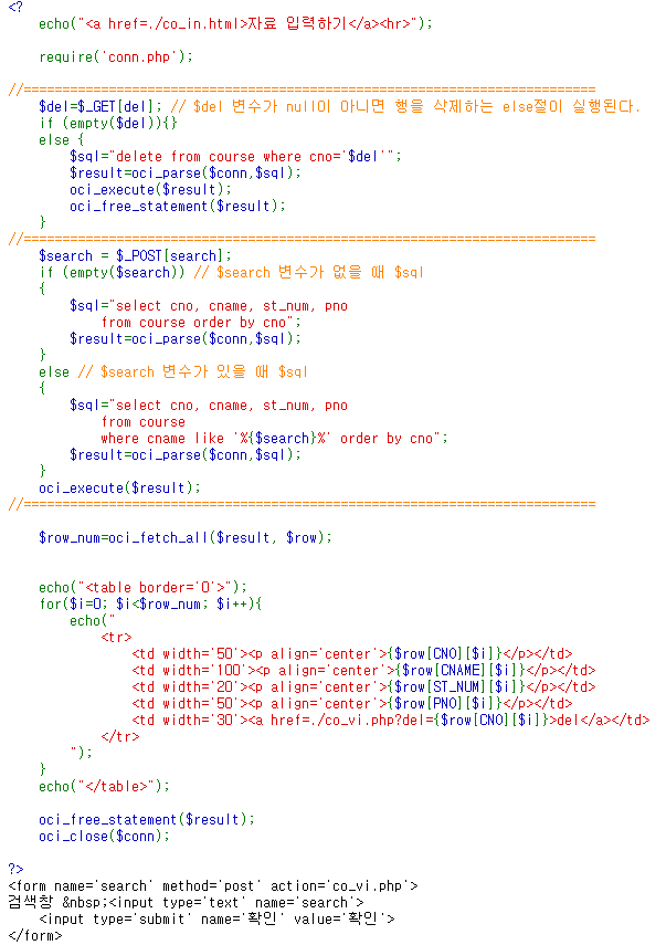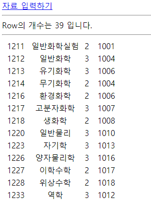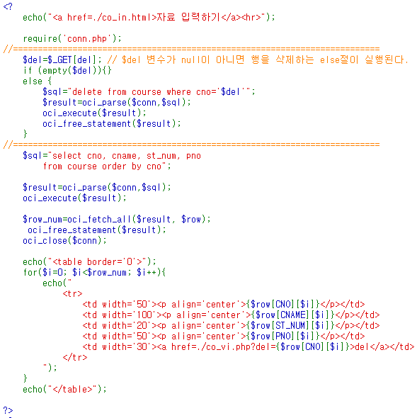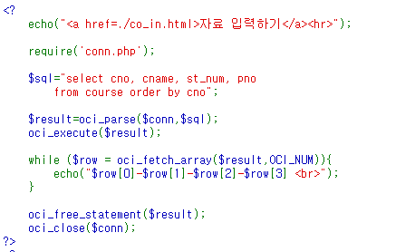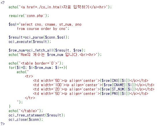6-2. 과목 테이블의 내용을 출력할 프로그램을 작성(co_vi.php)