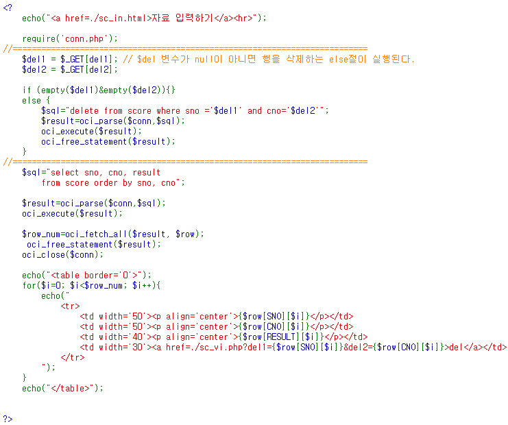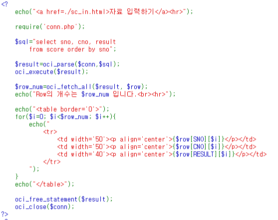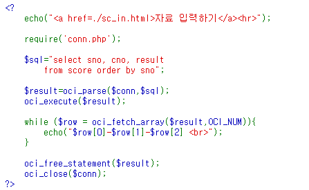 6-1. 점수 테이블의 내용을 출력할 프로그램을 작성(sc_vi.php)
