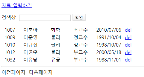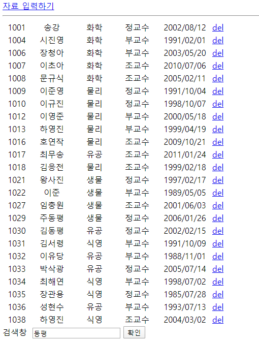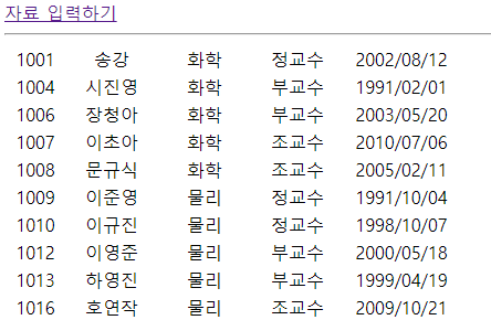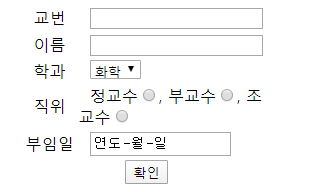 5-1. 교수 테이블 입력을 위한 폼 파일 작성(pr_in.html)