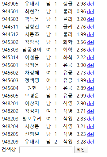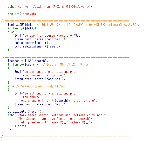 search 변수가 있을때와 없을때로 나눠서 구문을 작성한다. 삭제기능과는 전혀 서로 영향을 주지 않기때문에 상관없다.