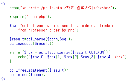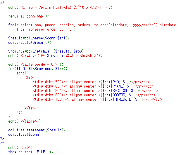 5-3. 교수 테이블의 내용을 출력할 프로그램을 작성(pr_vi.php)