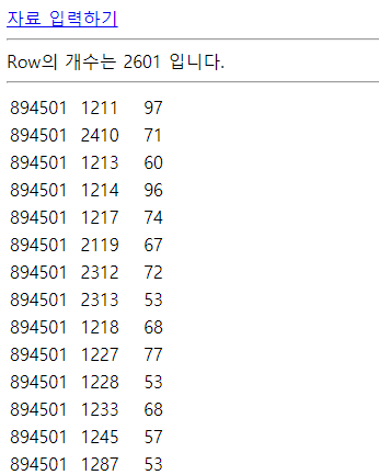 2차원 배열에 데이터가 존재하기때문에 원하는 데이터를 하나만 출력하거나 중간까지만 출력하는등 데이터의 활용도가 훨씬 높아진다. while문이 아닌 for문을 사용하기때문에 row_num의 양을 바로 알 수 있다.
