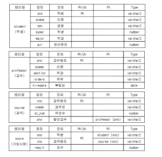 5. 이와 같은 방식으로 교수 테이블도 작성해준다.