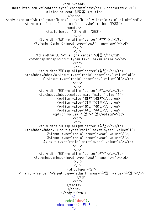 2. 학생 테이블 입력을 위한 폼 파일 작성(st_in.html)