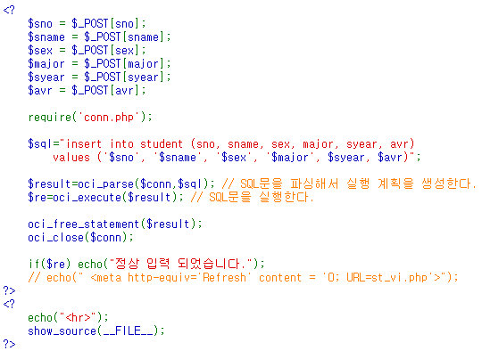 3. 학생 테이블에 입력된 데이터를 전달 받아 입력할 프로그램을 작성(st_in.php)