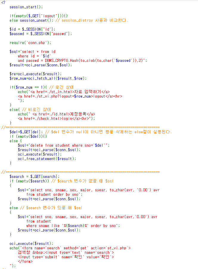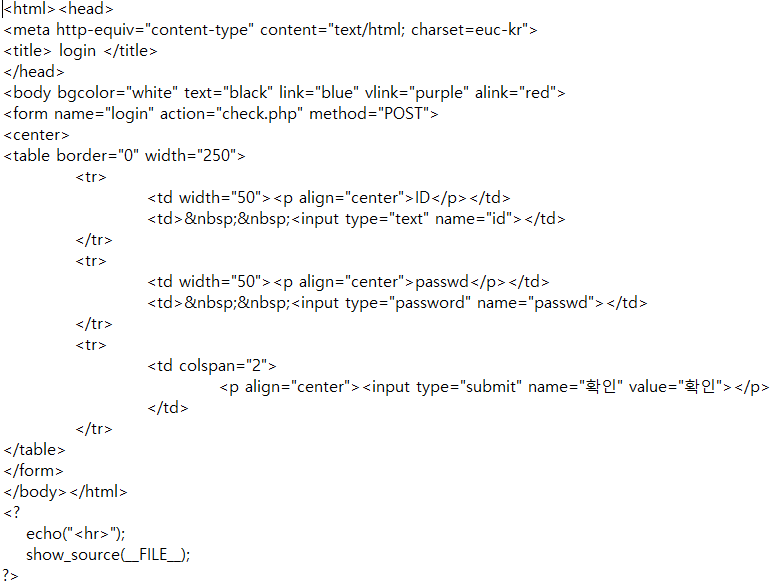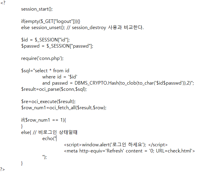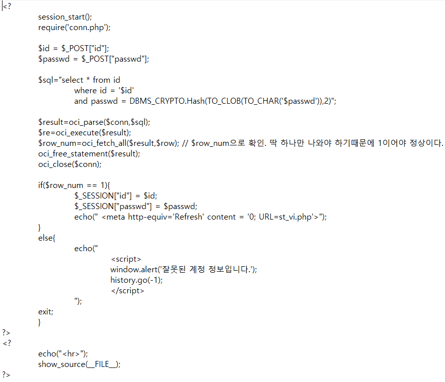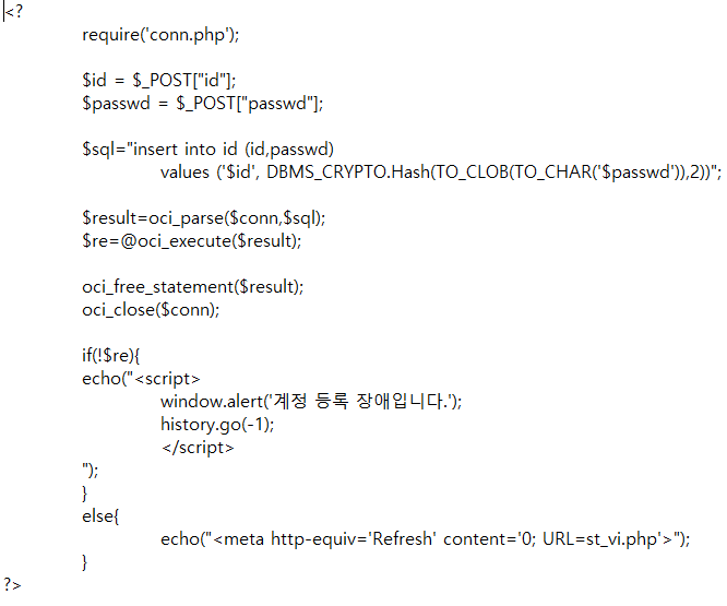 check.php, id.php, st_vi의 sql문의 '$passwd'를 '$id$passwd'로 변경해준다.