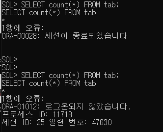 SQL> ALTER SYSTEM KILL SESSION <'SID번호, SERIAL번호'>;