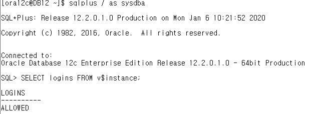 SQL> SELECT LOGINS FROM V$INSTANCE;