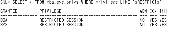 #SELECT * FROM dba_sys_privs WHERE privilege LIKE '%RESTRICT%';