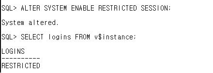 SQL> ALTER SYSTEM [ENABLE | DISABLE] RESTRICTED SESSION;