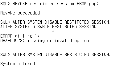 만약 ALTER SYSTEM ENABLE RESTRICTED SESSION 명령을 통해 제한 모드를 활성화 한 상태