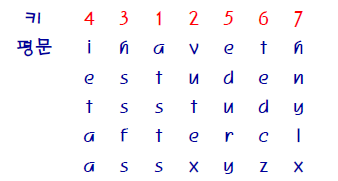복호화 하는 입장에서는 키의 길이로 문장의 길이를 나눠서 몇 글자씩 세로로 배치할지 분석후 평문을 확인하면 된다.