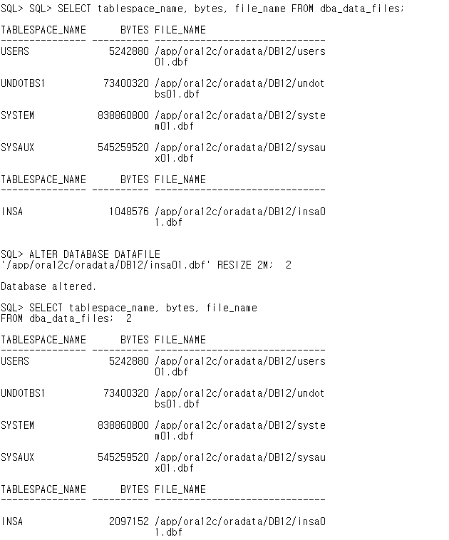 '/app/ora12c/oradata/DB12/insa01.dbf' RESIZE 2M;